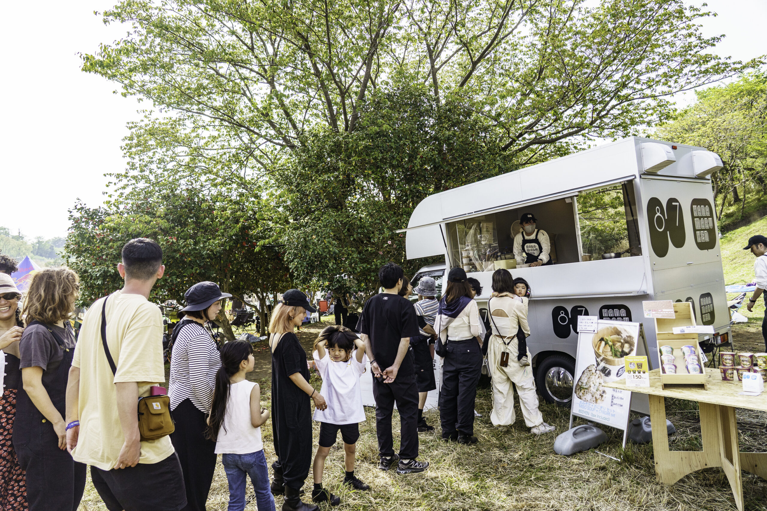 RDCの人気エリアの1つであるハンモックカフェに併設する形で、ハナマルキの麹製品を使用したおにぎりとお味噌汁を提供し、
