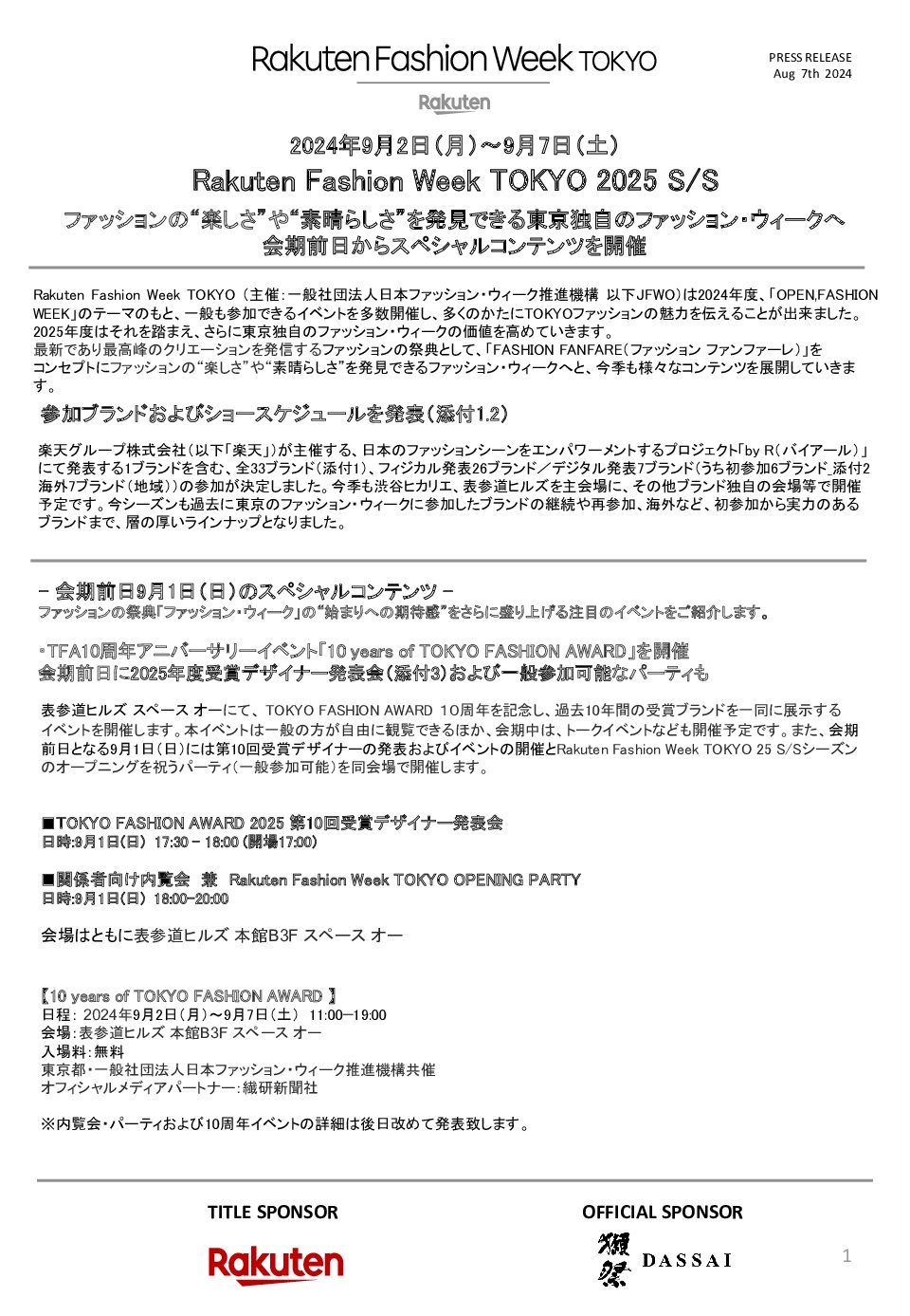 【メインリリース】Rakuten FWT 25SS 記者発表 プレスリリース